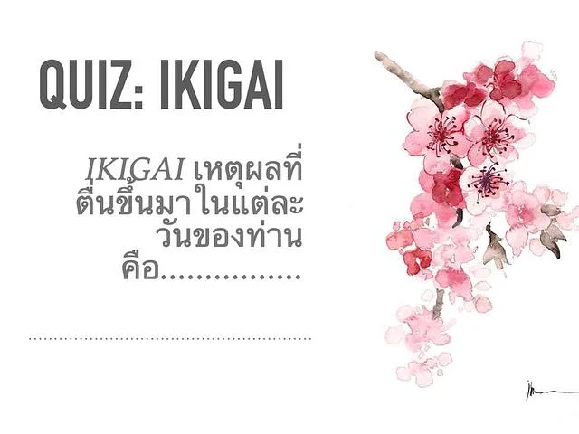 เริ่มจากแนะนำว่า IKIGAI สำคัญอย่างไร IKIGAI มีความสำคัญอย่างไร ทำไมฮิต เริ่มจาก IKIGAI มีความหมายอย่างไร แล้วเริ่มด้วยการตั้งคำถามผู้เรียนด้วยคำถามต่อไปนี้